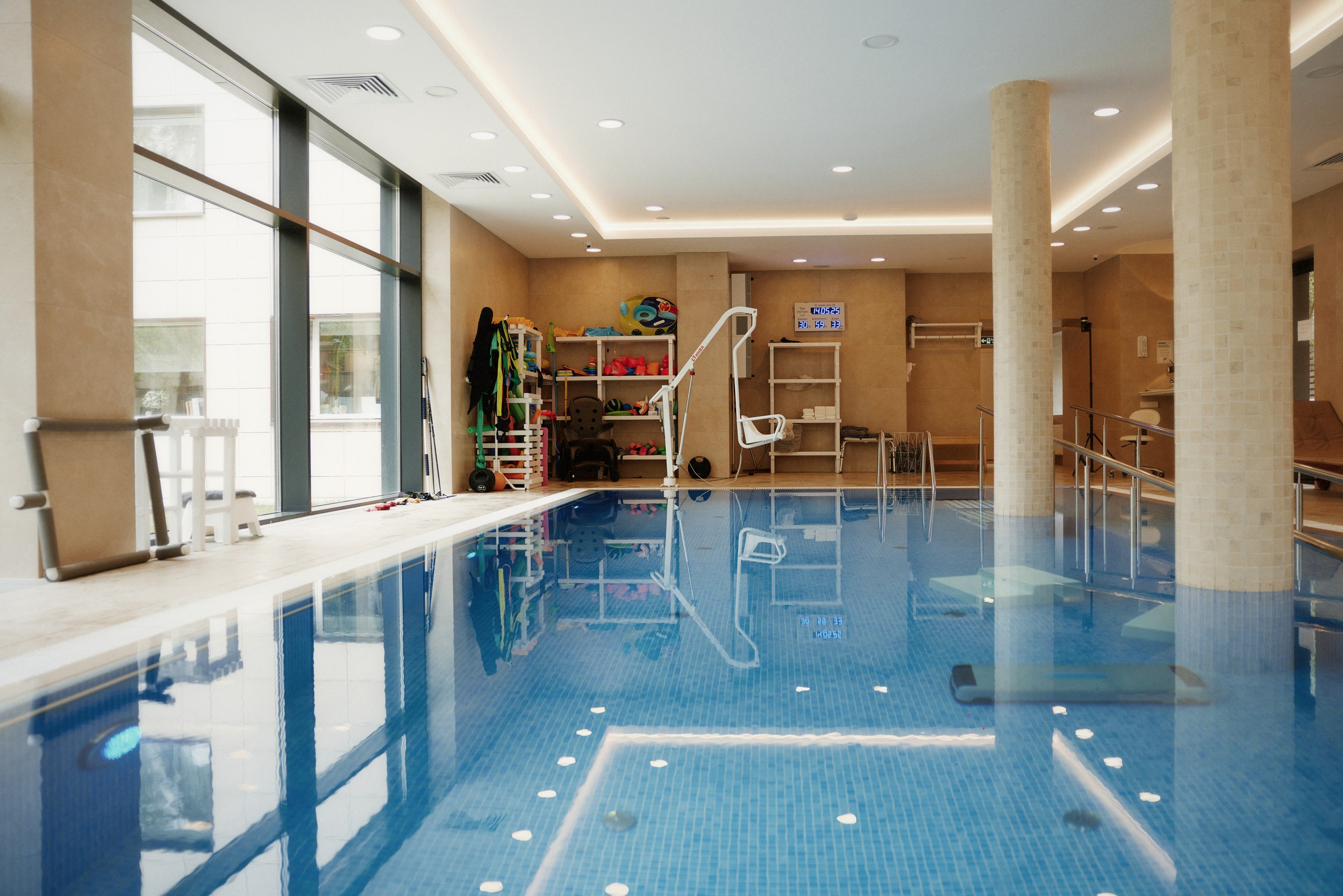 Превосходная клиника с участливым и внимательным персоналом на каждом этапе взаимодействия. Поддерживается образцовое санитарно-гигиеническое состояние помещений, предлагается ресторанное меню с возможностью выбора блюд заранее, оснащенность различными видами тренажёров для любых нужд, доступен плавательный бассейн.